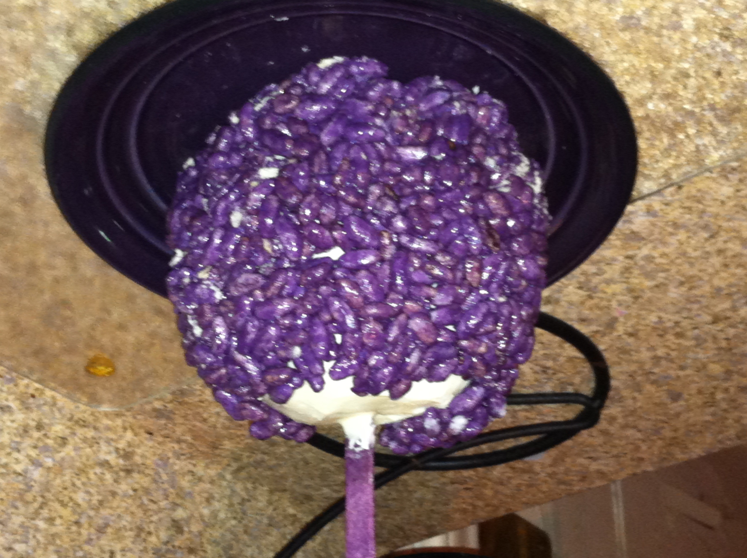 Half Dozen Fullsize apple dipped in you choice of white chocolate, chocolate,or caramel wrapped in a colorful rice crispy treat! You choose your color.